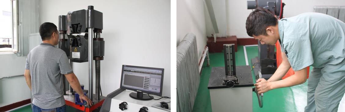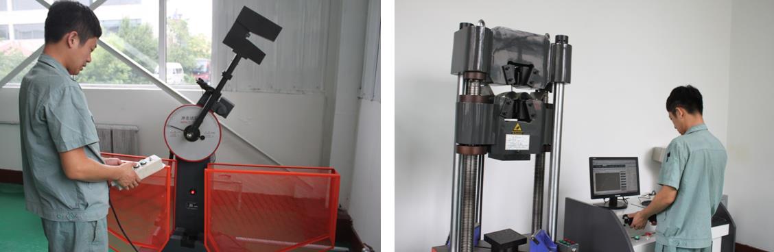 公司理化室擁有CST-50沖擊試樣投影儀、SD-V手動沖擊試樣拉床、JB-300B半自動沖擊試驗機和WEW-300B微機屏顯液壓萬能試驗機,可以按照GB/T228《金屬材料室溫拉伸試驗方法》對試塊進行一拉三沖試驗,檢驗結果數據準確,為更好的實施產品質量控制提供保障。